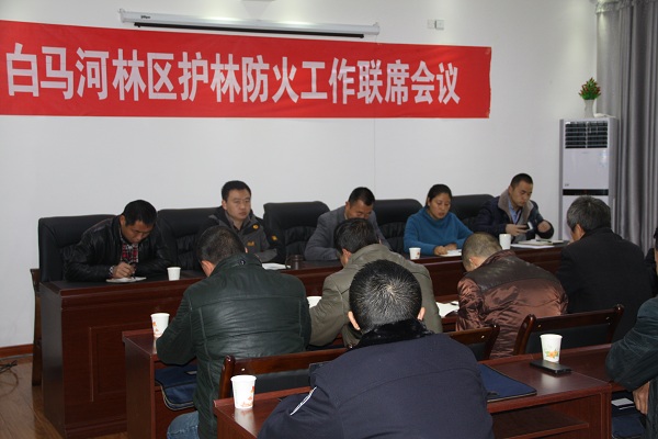 会上学习传达了《甘肃省白水江国家级自然保护区管理局关于加强今冬明春森林防火工作的通知》;铁楼乡政府武装部长王寅凯宣读了《关于调整铁楼乡森林防火领导小组成员的通知》;白马河保护站负责人对去冬今春防火工作进行总结,并安排今冬明春森林防火工作。会议强调,必须提高认识,防火警钟长鸣,确保防火期平安渡过,并安排了近期的各项工作。一是对辖区存在的环保问题进行全面摸排;二是对征占用林地现象进行排查;三是加强冬季村民薪柴的管理;四是依法打击违法盗猎行为;五是加强天保资金的使用管理。