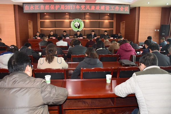 2月17日下午,白水江自然保护局召开2017年党风廉政建设工作会议。局党委成员,各党支部书记,各科室、保护站(中心)负责人,局机关干部职工参加了会议。管理局局长袁峰晓主持会议;党委书记刘兴明代表局党委总结2016年党风廉政建设工作,安排2017年主要任务;纪委书记何朝贵通报2016年纪委监督执纪问责情况,安排2017年纪委主要工作。