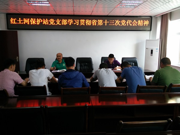 红土河保护站党支部学习传达省第十三次党代会精神