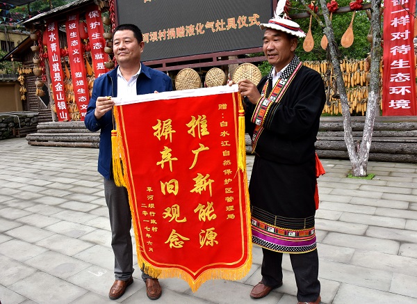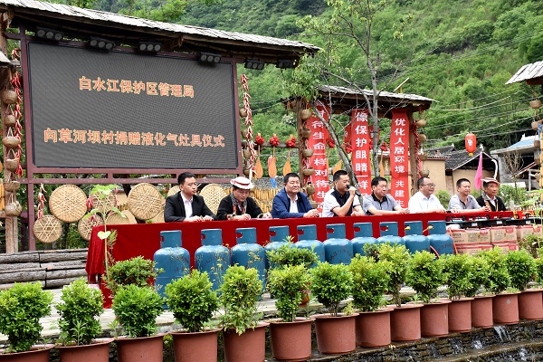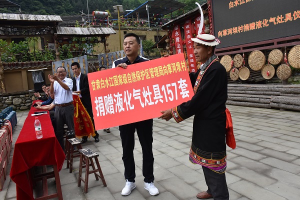 活动中,白水江保护区局向草河坝村民捐赠157套液化气灶,技术人员为领取液化气灶具的村民详细讲解了液化气的正确使用方法及平常应该注意的问题,白马河保护站代表管理局与他们签订了《液化气灶安全使用责任书》和《森林资源保护承诺书》,草河坝村民做了表态发言,并向白水江自然保护区管理局赠送“推广新能源,摒弃旧观念”的锦旗。