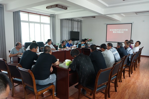 6月23日,白马河保护站召开专题会议,对辖区内生态环境整治进行动员和部署。铁楼乡政府及各行政村负责人、护林员、电站业主参加了会议。总工范文安到会指导工作。