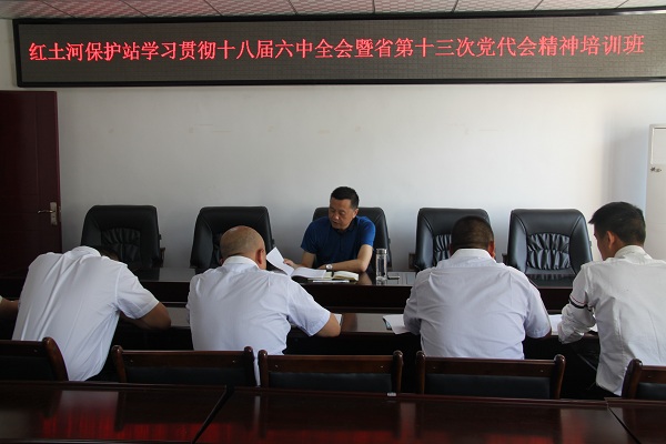 7月28日,管理局局长袁峰晓到红土河保护站,主持召开学习贯彻党的十八届六中全会精神暨省第十三次党代会精神培训会。