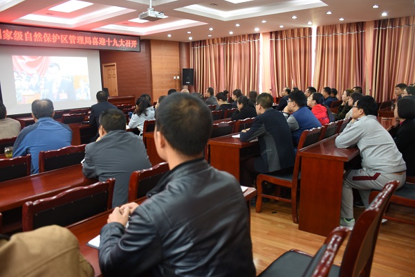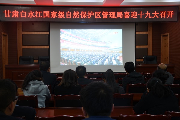 10月18日上午9时,党的十九大在北京人民大会堂开幕。白水江保护局组织全体干部职工在局五楼会议室观看了直播,各基层保护站(中心)同时组织干部职工观看了直播盛况。大家怀着无比喜悦兴奋的心情聆听了习近平总书记代表十八届中央委员会向大会所作的报告,倍感振奋,深受鼓舞,纷纷表示,要在党的十九大精神指引下,不忘初心,牢记使命,奋力拼搏,为自然保护工作积极贡献力量。