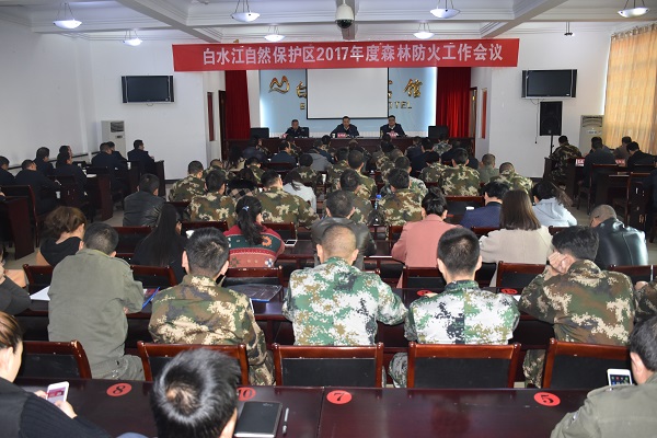 11月13日上午,白水江保护局在白水江宾馆召开2017年度森林防火工作会议。会议由局长袁峰晓主持。会议对2016年度森林防火工作进行了总结,对2017年度森林防火工作作了安排部署。会议认真分析了当前森林防火形势,明确了2017年度白水江保护区森林防火工作任务和责任,并动员全局上下扎实做好森林防火工作,确保保护区森林资源和大熊猫栖息地安全。
