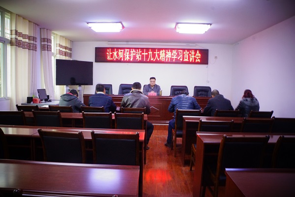 12月21日,管理局副局长黄晨翔一行到让水河保护站组织召开十九大精神学习宣讲会,让水河保护站全体职工参加学习。