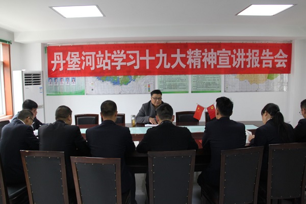12月22日,黄晨翔副局长到丹堡河保护站组织宣讲十九大精神报告会,丹堡河保护站全体职工参加会议。