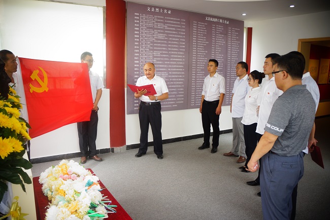 全体共产党员怀着对烈士无限崇敬的心情来到程海寰烈士纪念馆,被大量的历史图片、翔实的文字介绍、珍贵的革命文物、逼真的人物雕塑深深地震撼,受到了精神的洗礼、理想信念的升华。随后,前往文县烈士陵园,全体党员整齐的站在英雄纪念碑前默哀,由四名代表向革命先烈敬献花蓝、全体党员默哀一分钟、重温入党誓词后,大家依次环烈士墓瞻仰一周,深切表达了对革命先烈的追思。