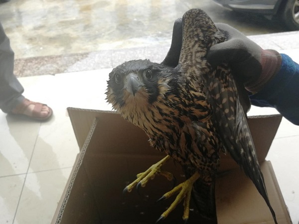 7月11日,高速公路巡护人员在枫相路段进行道路巡护时,发现一只受伤的野生鸟类,并移送到红土河保护站,经保护站专业技术人员与管理局动物专家联系,鉴定该鸟为国家二级保护动物游隼,疑似尾部受伤,但精神状态良好。因近日陇南地区普降大雨造成交通不便,无法及时送达管理局救护中心进行治疗,暂由保护站工作人员救护照管。
