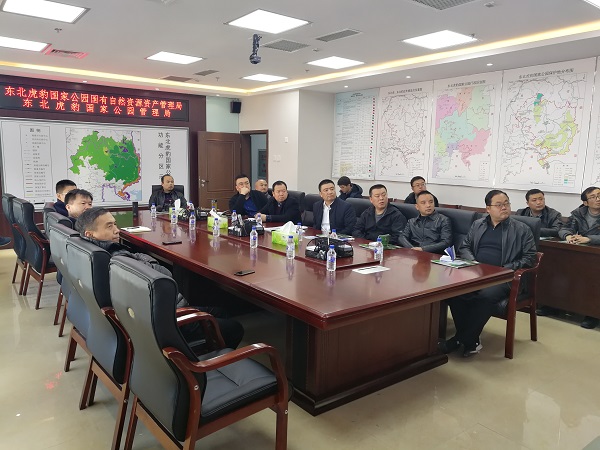 随后在东北虎豹国家公园管理局学习交流,学习了东北虎豹国家公园建设的情况,深入探讨国家公园建设存在的难点,并观摩了东北虎豹国家公园自然资源监测与管理物联网系统、天地空一体化的监测网络体系的顶层设计以及在先进监测技术支持下所取得的野生动物动态监测成果。最后培训人员对东北虎豹国家公园管理局下设的珲春局实地进行考察学习,与保护第一线的同志深入交流监测、管理的经验,取长补短。