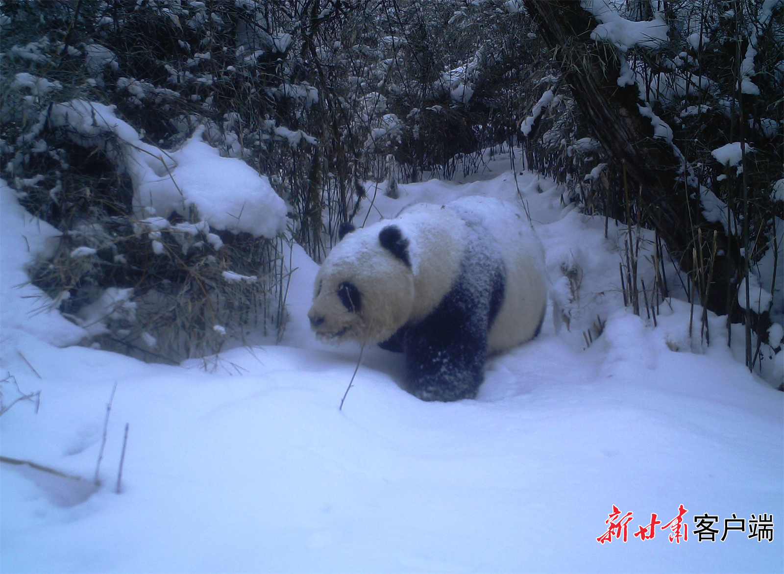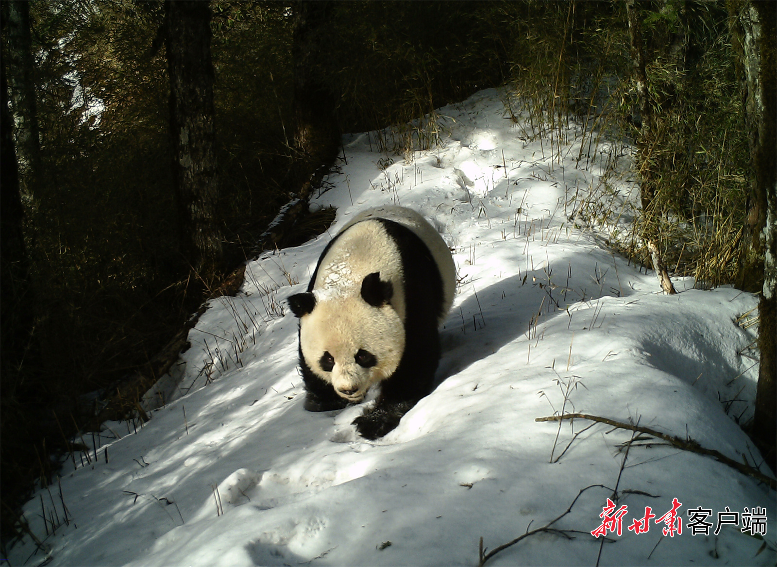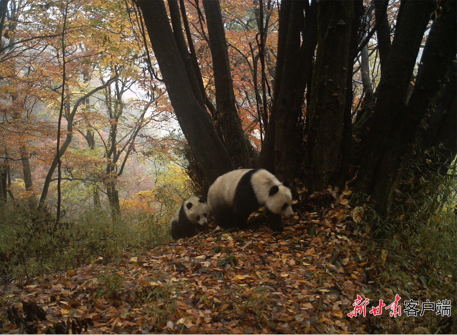 大熊猫国家公园甘肃片区拍到的大熊猫影像。